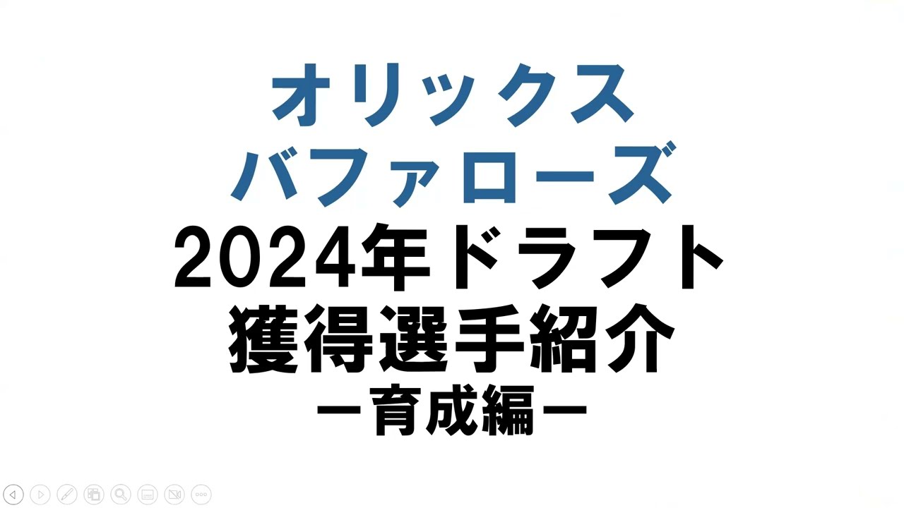 【オリックス】2024年ドラフト獲得選手紹介!ー育成編ー オリックス・バファローズが2024年ドラフトで獲得した選手の紹介です。今回は育成指名された6人の選手を紹介しました。よければチャンネル登録、高評価よろしくお願いします。 Xアカウント https://x.com/MeShow46 note https://note.com/meshow ORIX Buffaloesオリックスオリックス・バファローズ NPBHUB.COM | The Fanbase of Nippon Baseball & Nippon Professional Baseball