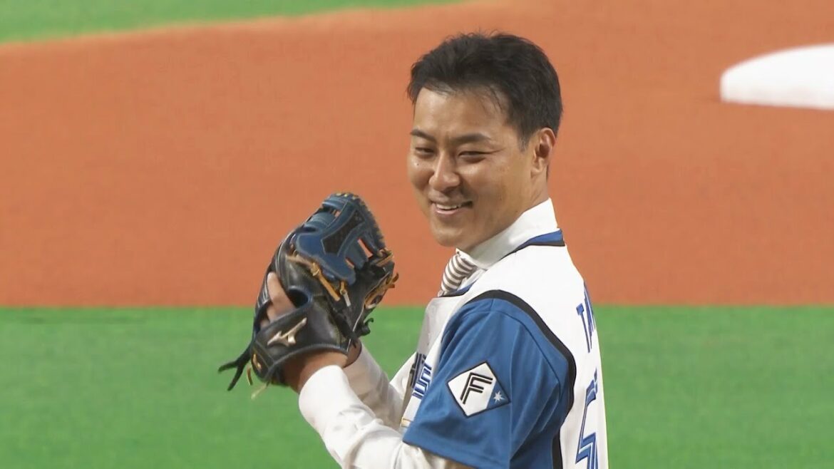札幌ドームで最も多くヒットを打った言わずと知れたレジェンド。田中賢介スペシャルアドバイザーが札幌ドーム最終戦での始球式に登場。見事なピッチングで試合に花を添えました。