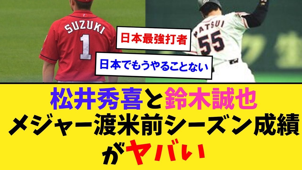 松井秀喜と鈴木誠也のメジャー渡米前のシーズン成績、改めて見ると普通にヤバい【なんJ2ch5chプロ野球反応集】