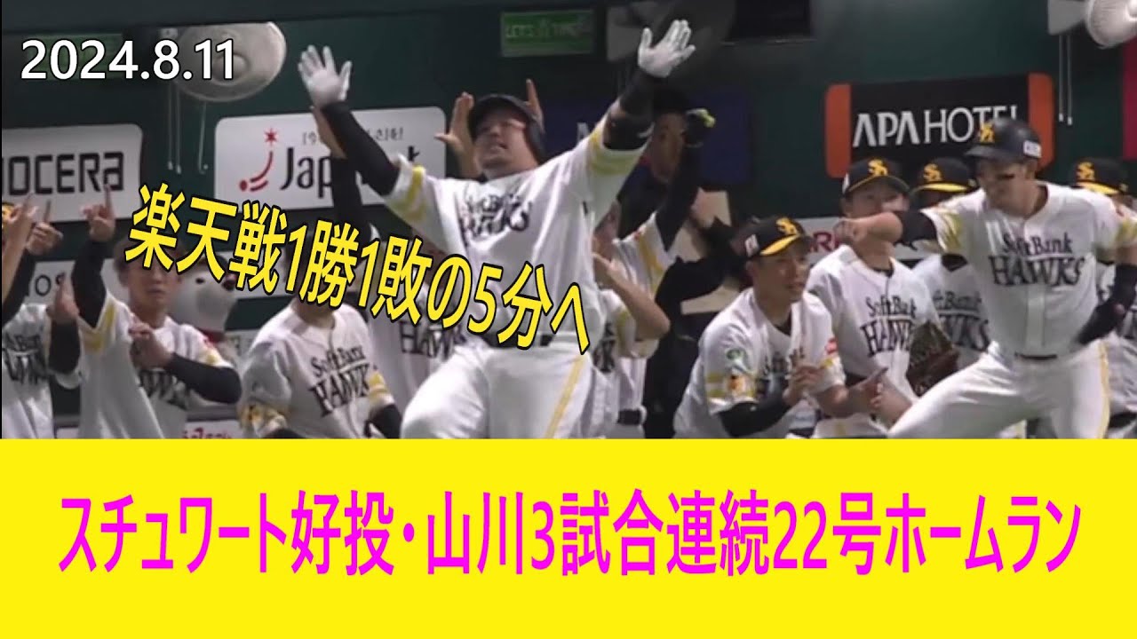 スチュワート好投・山川3試合連続22号ホームラン(2024.8.11楽天戦)#スチュワート#山川穂高#ホームラン#ソフトバンクホークス#楽天イーグルス