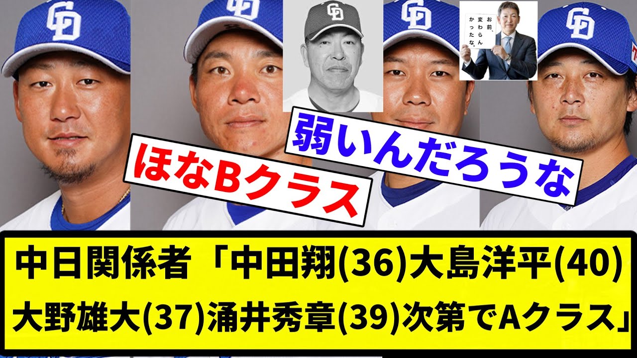 引用 中日関係者「躍進の鍵は4人のベテラン。中田翔(36)大島洋平(40)大野雄大(37)涌井秀章(39)次第でAクラス