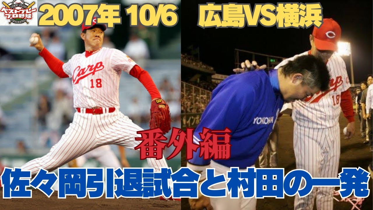 【伝説の瞬間】佐々岡 引退登板で村田と激突…感動と興奮の一戦 2007 10/6 広島VS横浜 佐々岡の引退登板! しかし横浜はこの場面で村田がリーグ単独トップとなる36号ソロを放ち、 本塁打王に大きく前進した。 佐々岡は続く代打・鈴木尚を三振に取り、引退の花道を飾った。 #プロ野球 #プロ野球ニュース #広島東洋カープ #横浜ベイスターズ #村田修一 #佐々岡真司 Hiroshima Toyo Carp佐々岡真司広島東洋カープ NPBHUB.COM | The Fanbase of Nippon Baseball & Nippon Professional Baseball