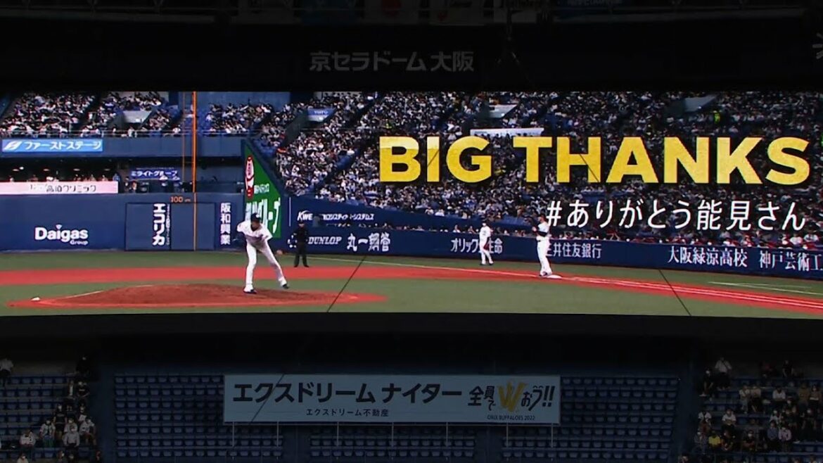 今日の試合をもって引退するオリックス・能見篤史の引退セレモニー。京セラドーム大阪の場内ビジョンに、これまでの感動シーンが放映されました。