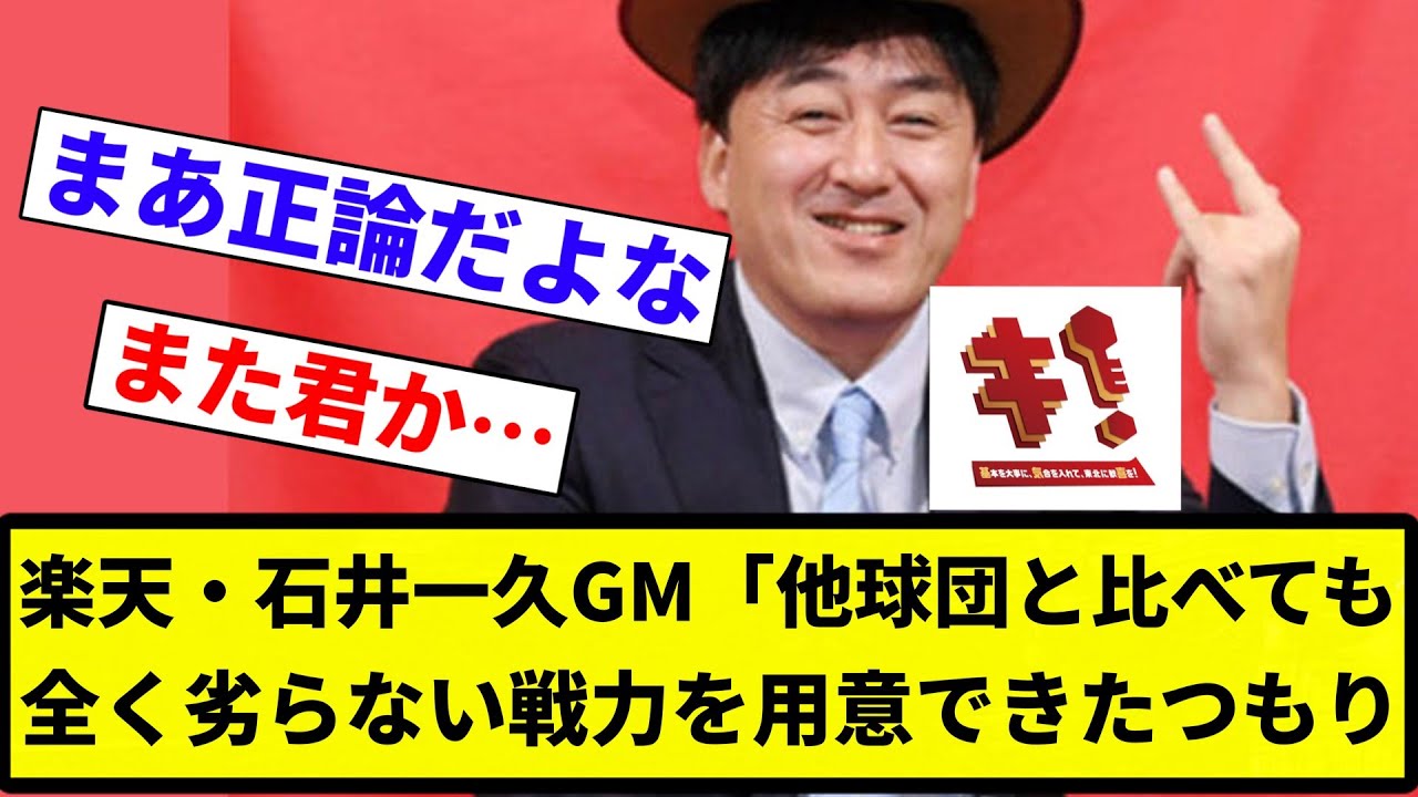 【三位はBクラスや!!】楽天・石井一久GM「他球団と比べても全く劣らない戦力を用意できたつもり。選手は骨太になってほしい」【プロ野球反応集】【2chスレ】【なんG】