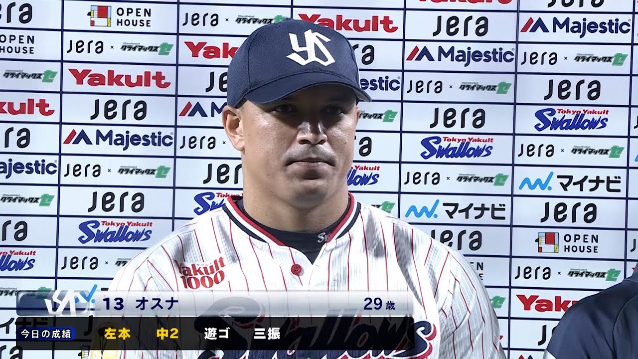 東京ヤクルトスワローズvs阪神タイガース戦後のオスナ選手のヒーローインタビューです。 ★プレミアムサービスの詳細はこちら★ https://www.yakult-swallows.co.jp/pages/entertainment/application #すわほー #オスナ #プロ野球CENTRAL LEAGUEOfficial ChannelOfficial VideoTokyo Yakult SwallowsTokyo Yakult Swallows Official ChannelTokyo Yakult Swallows Official Videoセ・リーグヤクルトヤクルトスワローズ東京ヤクルト東京ヤクルトスワローズ野球 NPBHUB.COM | The Fanbase of Nippon Baseball & Nippon Professional Baseball