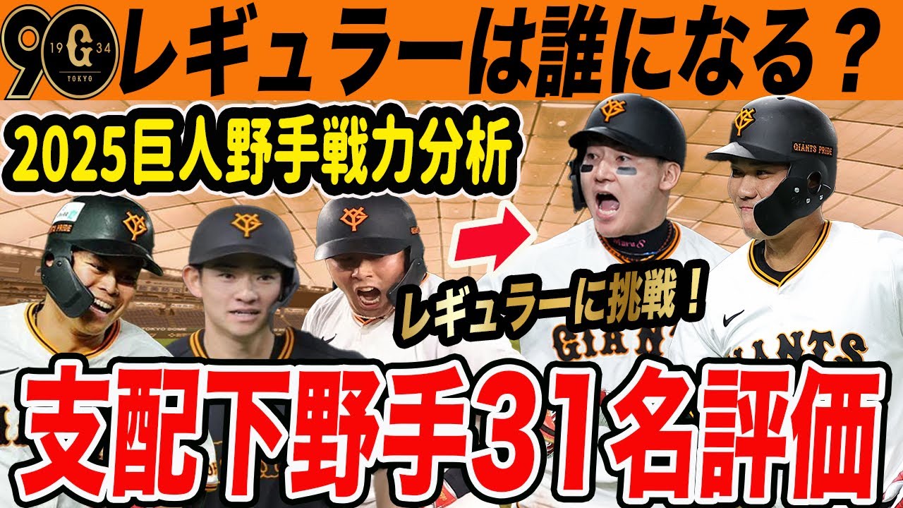 【巨人】2025年野手戦力分析!レギュラーを奪う若手選手は出てくるか?!支配下全31名の野手を評価 読売ジャイアンツ