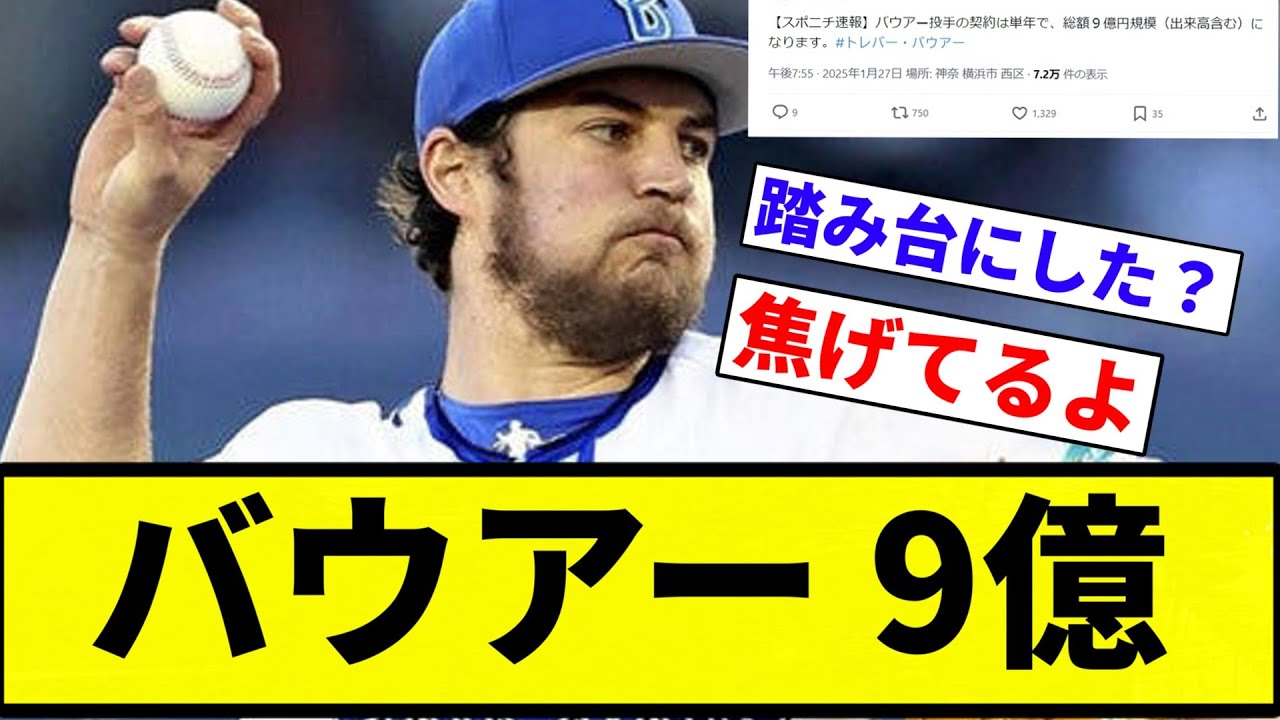 【978上沢】バウアー単年出来高込みで9億wwww【プロ野球反応集】【2chスレ】【なんG】