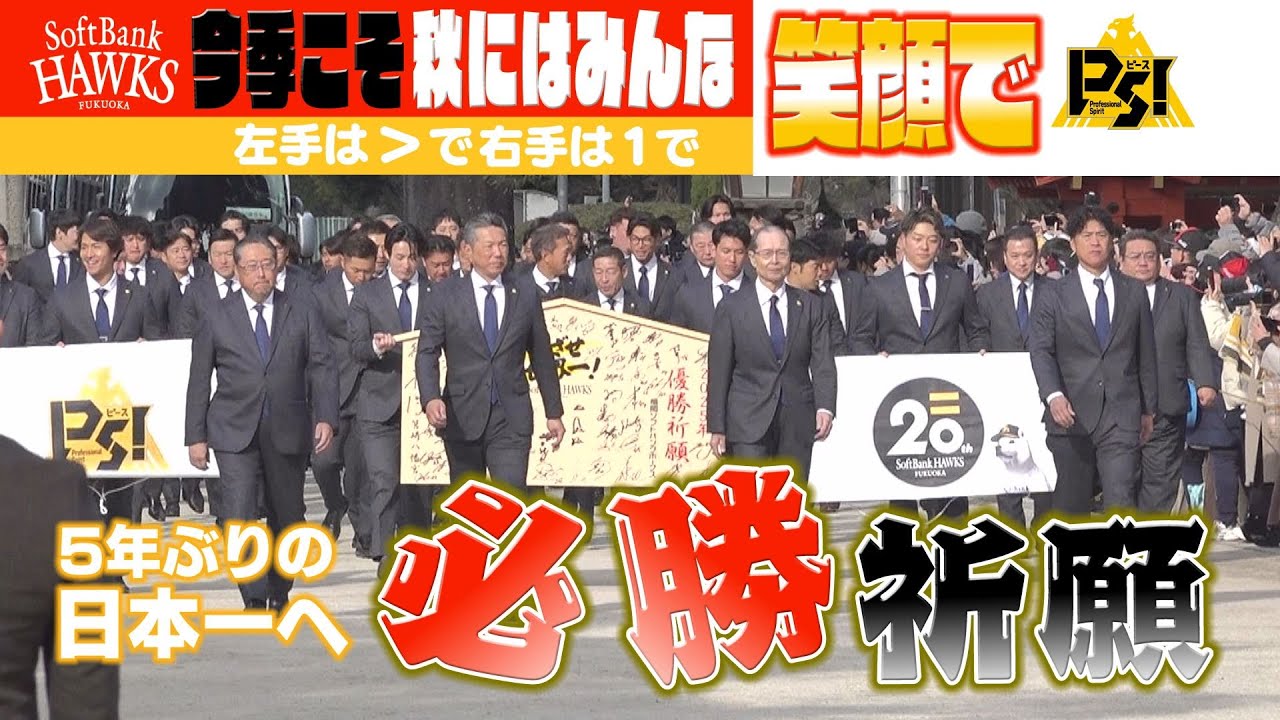 【チーム集合】リーグ連覇&日本一へ!必勝祈願【PS!(ピース)】 2025年1月30日(木)、今季のリーグ優勝と日本一への願いを込めて、福岡市東区の筥崎宮にて必勝祈願を行いました。 駆けつけたファンの皆さまへ #小久保裕紀 監督が新スローガン『PS!(ピース)』のポーズをレクチャーしました! #PS #ピース #professionalspirit #sbhawks #福岡ソフトバンクホークス Fukuoka SoftBank HawksFukuoka SoftBank Hawks Official ChannelFukuoka SoftBank Hawks Official VideoOfficial ChannelOfficial VideoPACIFIC LEAGUE福岡ソフトバンクホークス NPBHUB.COM | The Fanbase of Nippon Baseball & Nippon Professional Baseball