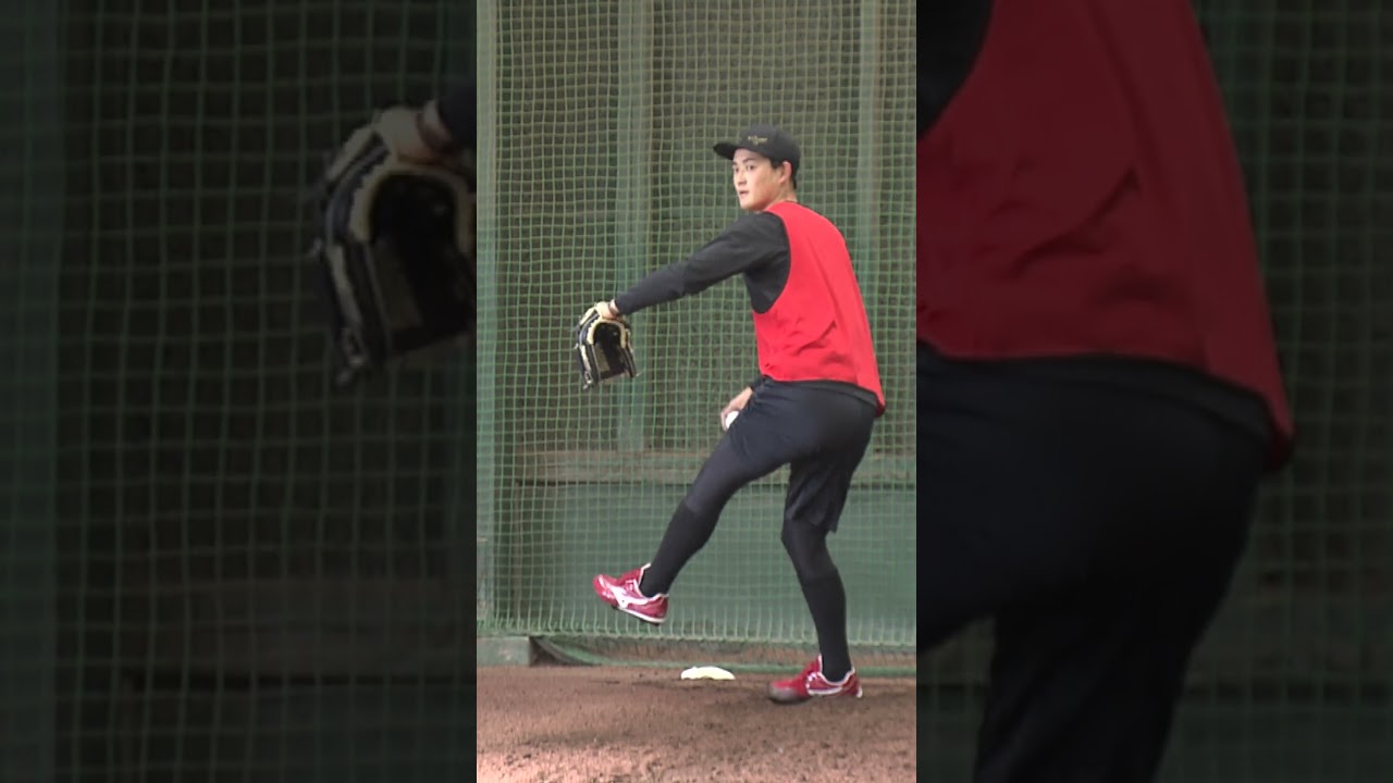 【カープ合同自主トレ】ドラフト3位・岡本駿!!華麗な投球フォームにほれぼれ! #カープ #プロ野球 #広島東洋カープ #岡本駿