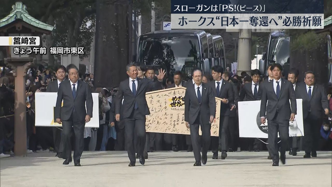 福岡ソフトバンクホークスが、キャンプインを前に、福岡市の筥崎宮で必勝祈願を行いました。