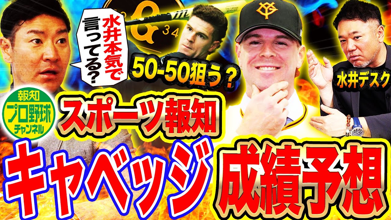 キャンプ直前SPコラボ!スポーツ報知がキャベッジの今季成績をズバリ予想‼︎ついに来日したキャベッジ!意外と足が速いとの噂だが、キャンプで神助っ人か見極める方法は⁉︎岡本和真は外野手起用?その真意とは⁉︎ドラ1石塚も開幕一軍あるぞ⁉︎坂本勇人vs新世代!各ポジション熾烈なレギュラー争いの行方は⁉︎巨人キャンプ見所総チェック「野手編」‼︎これを見ればキャンプが10倍楽しくなる!巨人キャンプ直前!報知プロ野球チャンネルSPコラボ‼︎是非最後までご覧ください⚾️