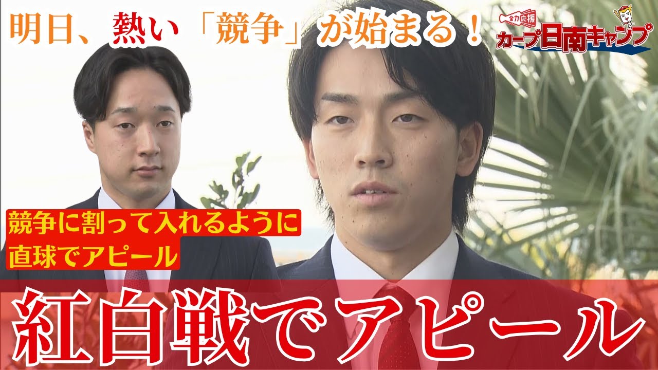 一番は全球種も投げて、こうアピールできるように新井監督も競争って言ってるので、その競争に割り込めるぐらいしっかりアピールして、自分のいいところを見てもらえるように。
