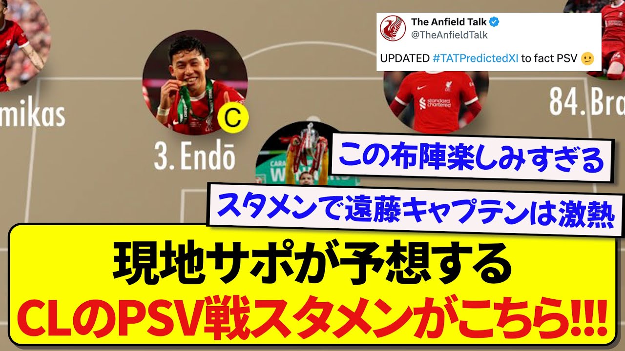 リヴァプールの現地サポーターによるPSVのスタメン予想、さすがにワクワクが止まらない件!!!!!