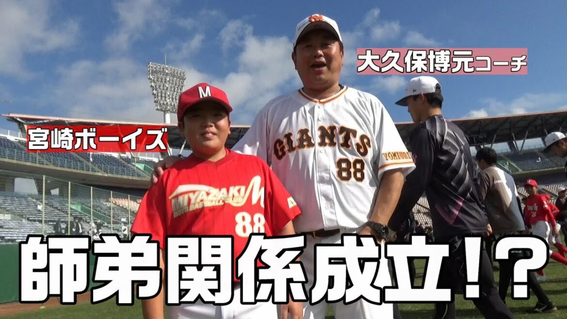 地元・宮崎ボーイズの選手たちと一緒にウォーミングアップを行い、大久保博元コーチに弟子が誕生しました!