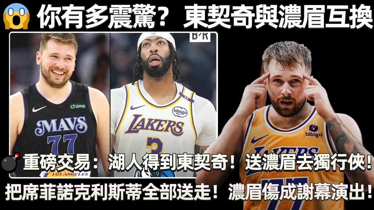 😱 你有多震驚? 東契奇與濃眉互換! 💥💣 Shams宇宙級重磅交易:湖人得到東契奇! 送濃眉去獨行俠! 湖人把席菲諾、克利斯蒂全部送走! 得到未來門面! 濃眉傷退成為了他在湖人謝幕演出!
