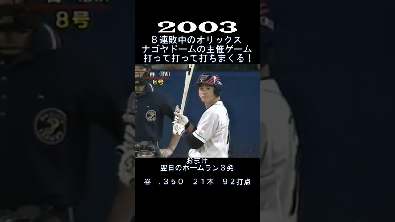 2003 8連敗中のオリックス ナゴヤで打ちまくる! #shorts #ホセオーティズ #谷佳知 #プロ野球 #オリックスブルーウェーブ Hanshin Tigers小野泰己阪神タイガース NPBHUB.COM | The Fanbase of Nippon Baseball & Nippon Professional Baseball