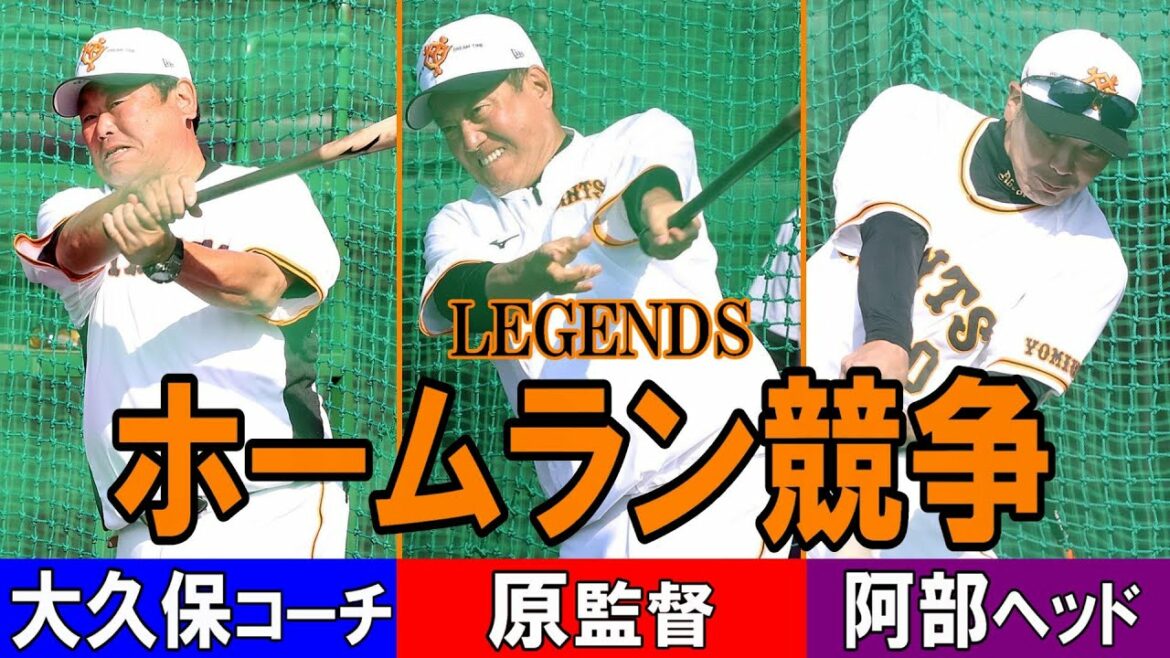 秋季キャンプの練習前。原辰徳監督、大久保博元コーチ、阿部慎之助ヘッドコーチがフリー打撃でホームラン競争!
