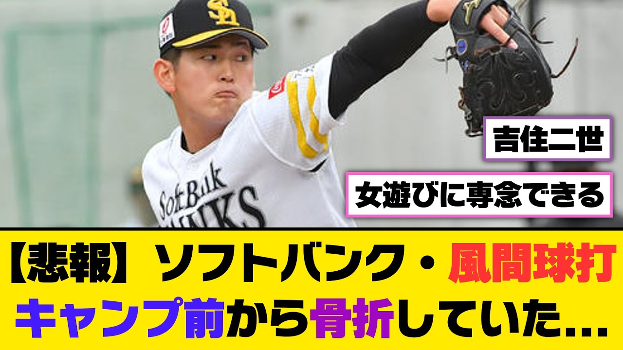 【悲報】ソフトバンク・風間球打、キャンプ前から骨折していた…【5ch/2ch】【なんj/なんg】【反応集】