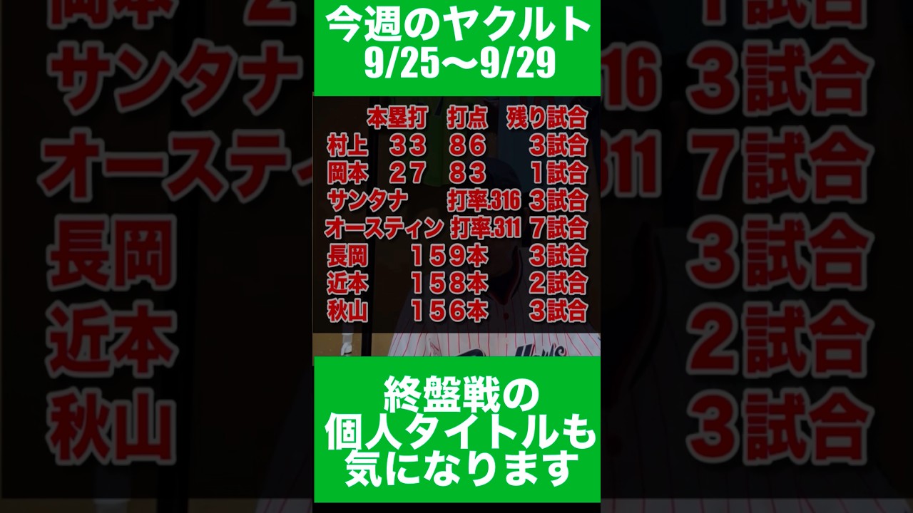 今週のヤクルト『9/25〜9/29』ハマスタから5連勝!個人タイトルも気になってきた終盤戦! #swallows #ヤクルト #スワローズ #村上宗隆 #サンタナ #長岡秀樹 #ヤり返せ #すわほー