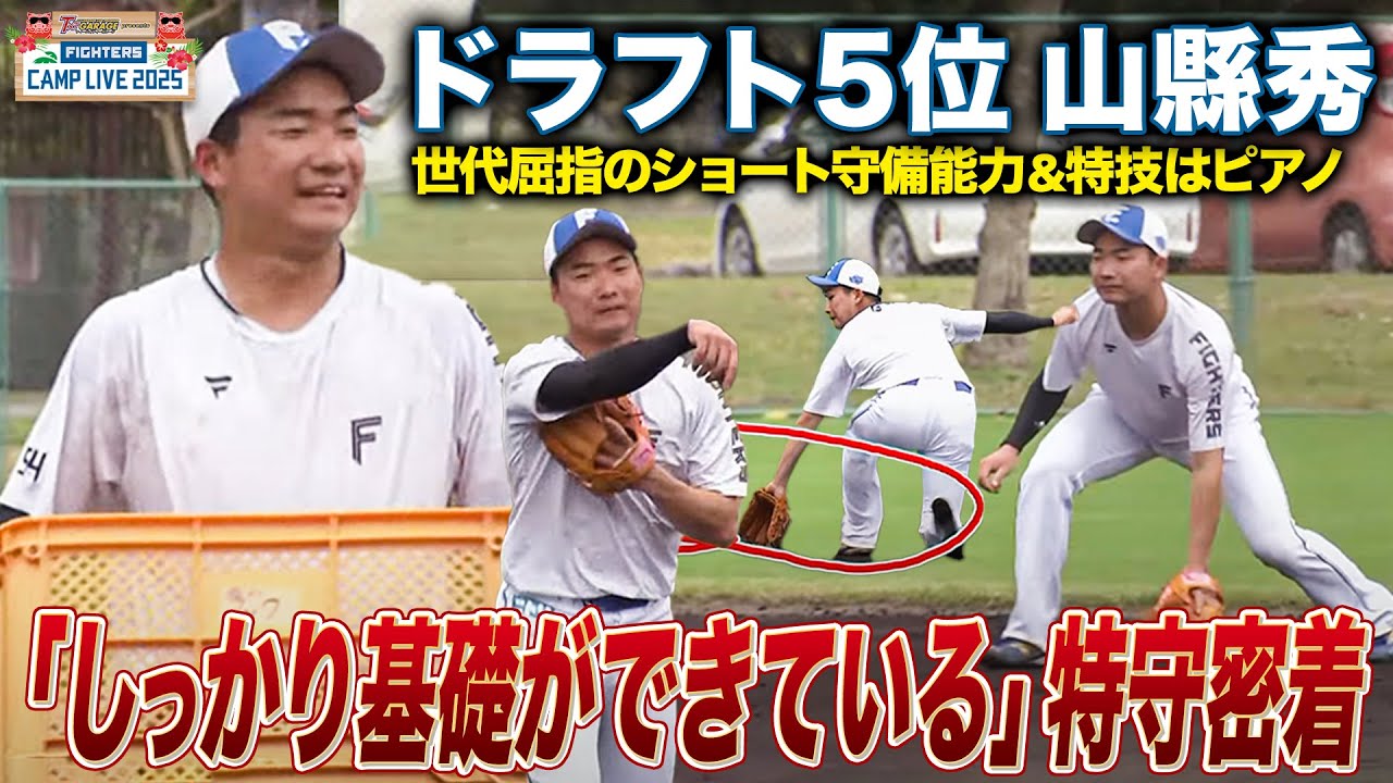 【リアル殿馬】「守備でご飯を食べたい」ドラ5ルーキー山縣秀自慢の守備をじっくり中継<2/3ファイターズ春季キャンプ2025>