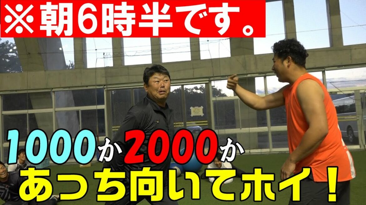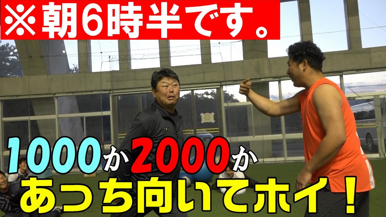 2000スイング以上が課せられる、毎日のアーリーワーク。この日は、特別にスイング数減をかけて、#大久保博元 コーチと #香月一也 選手があっち向いてホイで熱戦を繰り広げました。