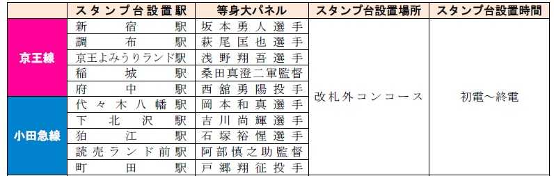 よみうりランド・読売巨人軍・京王電鉄・小田急電鉄がコラボレーションしたスタンプラリーです。京王線・井の頭線、小田急線の全駅とジャイアンツタウンスタジアムで配布するスタンプシートをお持ちいただき、京王線および小田急線の各5駅に設置されているスタンプを集めていただきます。集めたスタンプに応じて、先着で読売ジャイアンツの監督・選手がデザインされた本企画限定のクリアファイルを進呈します。クリアファイルのデザインは3種類あり、最大で3枚プレゼント、スタンプ設置駅には読売ジャイアンツの選手の等身大パネルも展示します。