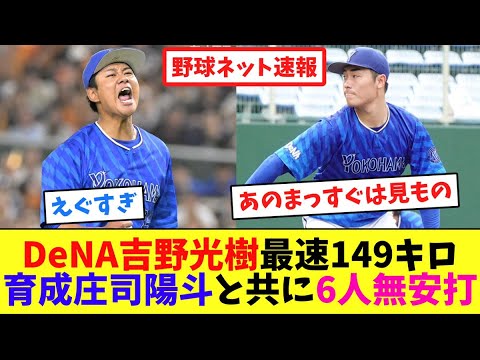 DeNA吉野光樹、最速149キロ!育成、庄司陽斗と共に6人無安打【ネット反応集】
