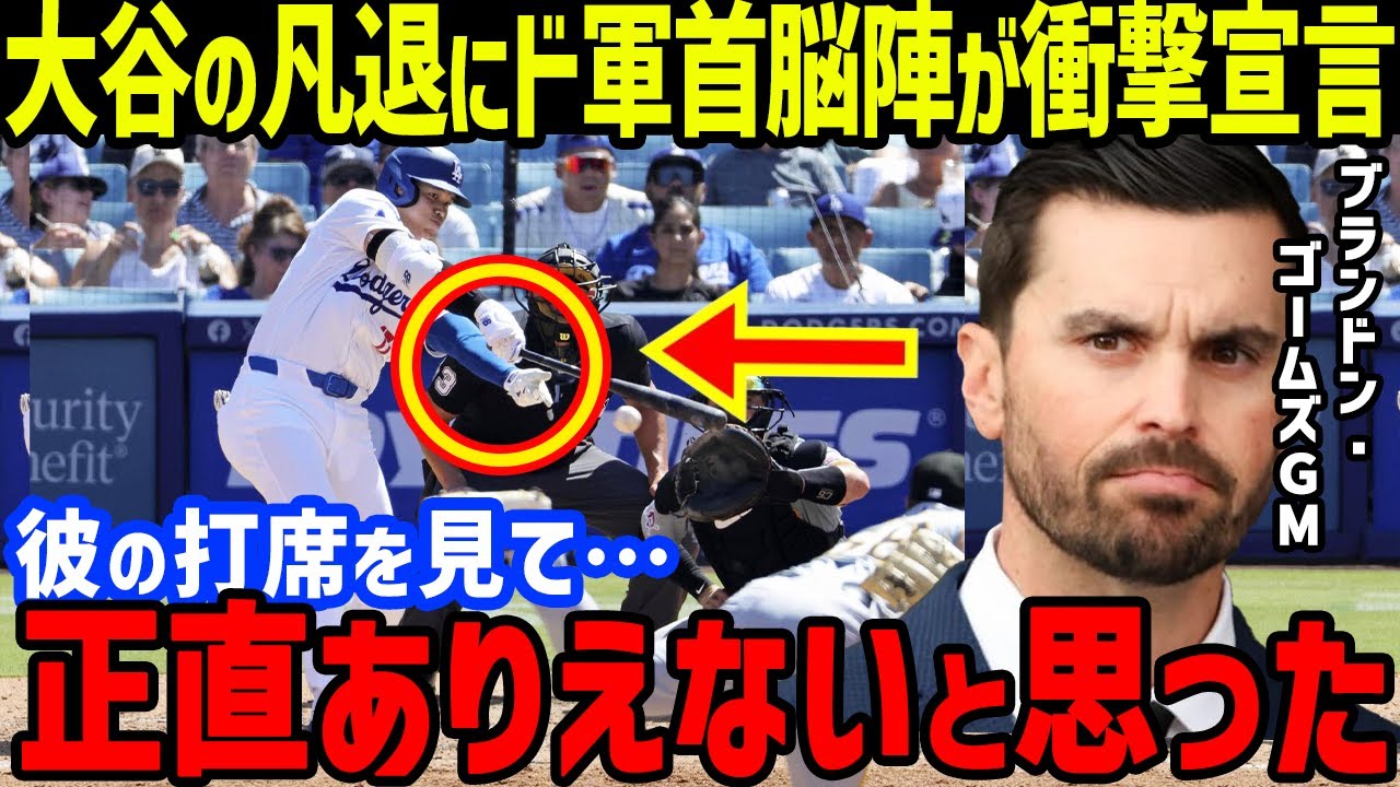 大谷翔平が4度凡退にブランドン・ゴームズGMが「打撃の調子が下がったら…」衝撃発言に一同騒然!デーブ・ロバーツ監督の苦言や三塁打も打率3割り切りのピンチ【海外の反応/MLB】