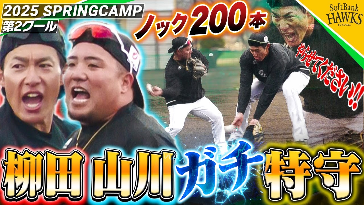 第2クールは #上沢直之 投手HappyBirthdayと #海野隆司 選手の美声からお届け♪そして、S組の #柳田悠岐 選手と #山川穂高 選手は特守で200本ノックに挑戦!グラウンドに響き渡る勇ましいギータの声をたっっっぷりとお聞きください♪