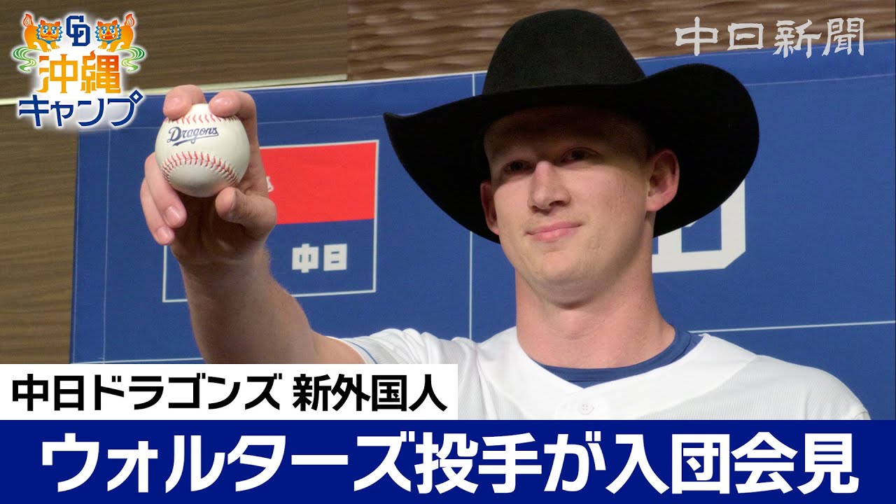 大谷翔平選手ともプレー 中日ドラゴンズの新外国人ウォルターズ投手が入団会見 MAX160キロ超! 米テキサス出身 自前のカウボーイハット姿で登場