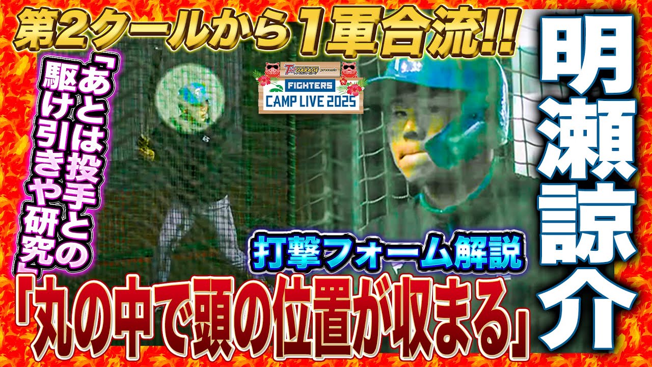 明瀬諒介の打撃フォームを賞賛‼️「丸の中で頭の位置が収まる」あとは投手との駆け引きか<2/7ファイターズ春季キャンプ2025>