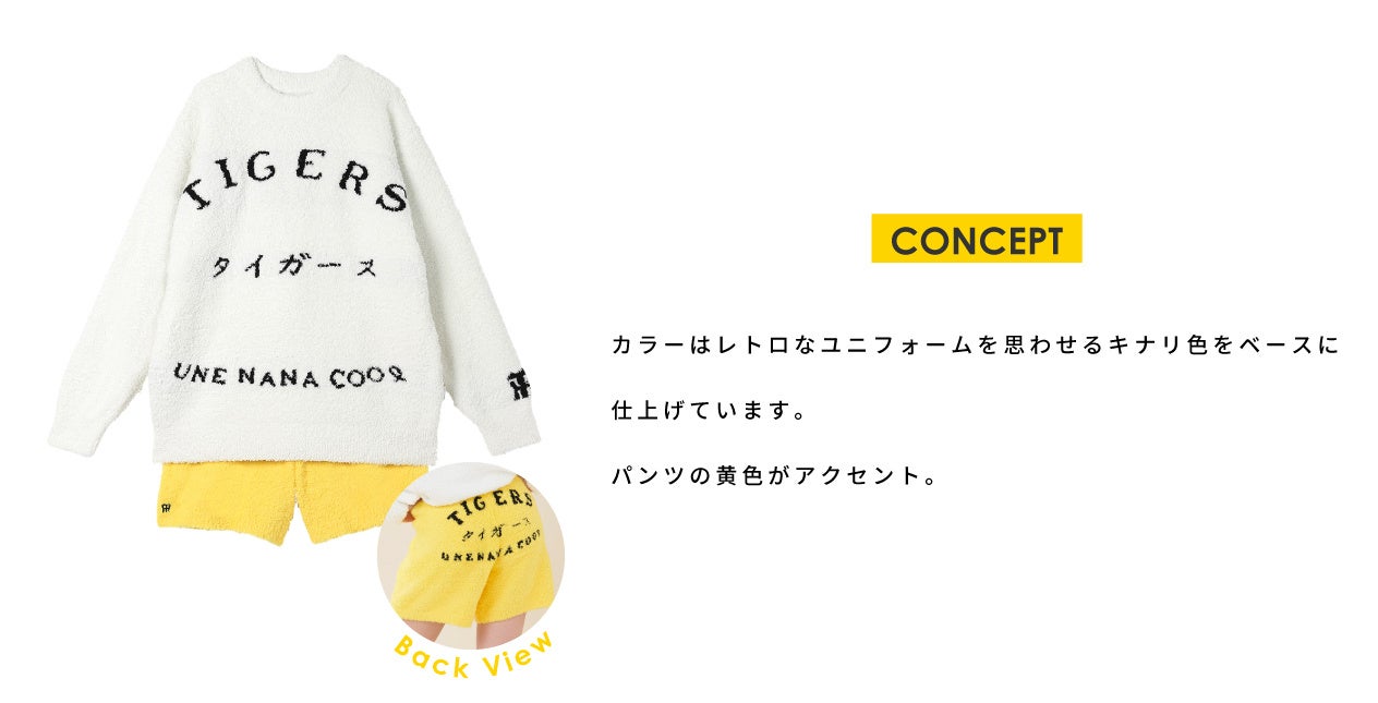 熱烈な阪神タイガースファン、ウンナナクールのクリエイティブディレクター千原徹也さんが監修した、「ゆる~い阪神タイガース」がコンセプトで、いわゆるばりばりの阪神タイガースとは異なりカジュアルに楽しめるデザインが特徴。