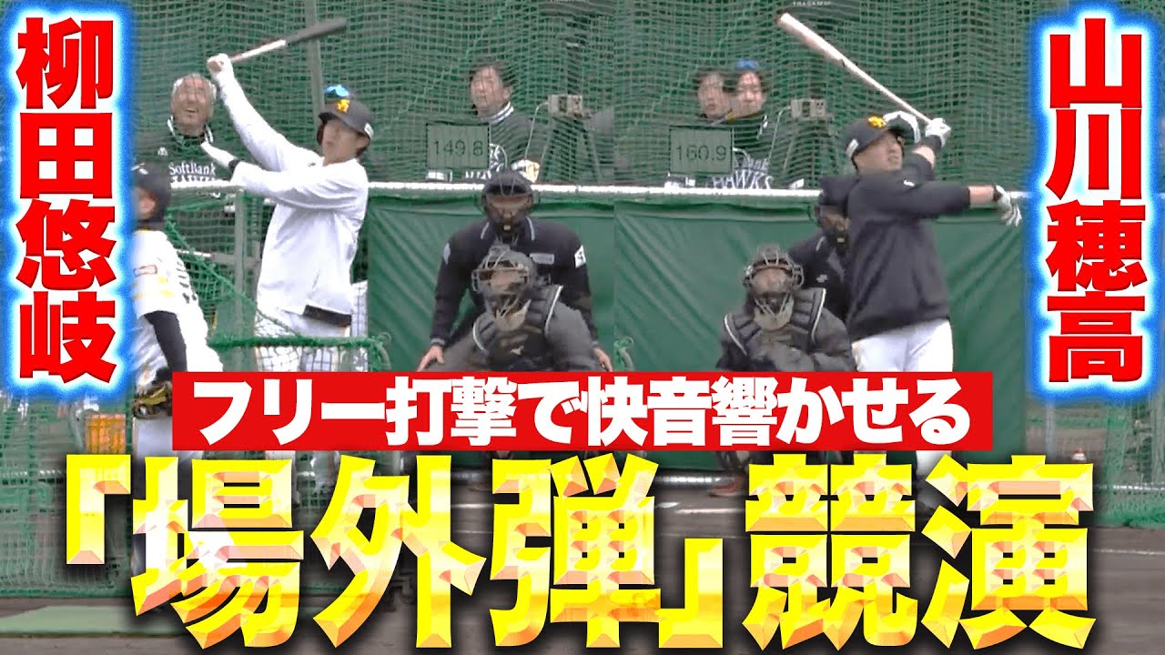 福岡ソフトバンクの主砲・山川穂高と柳田悠岐のフリー打撃!! さすがといいますか、軽々と打って柵越え連発。さらには場外弾も飛び出し快音を響かせました!!