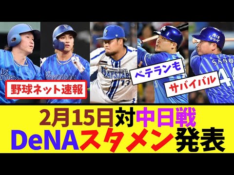 2月15日対中日戦、DeNAスタメン発表【ネット反応集】