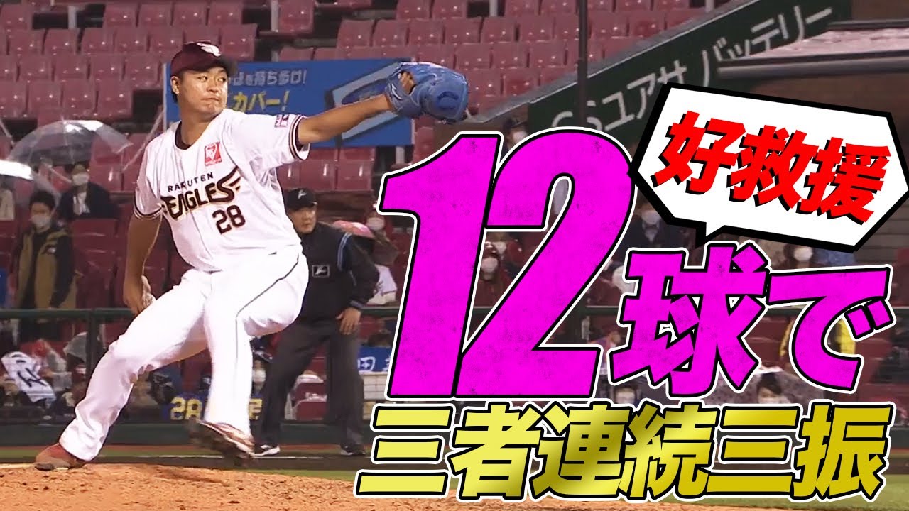 躍動感。東北楽天・酒居知史がたったの12球で3者連続三振。圧巻の好救援でチームの勝利に大きく貢献した。