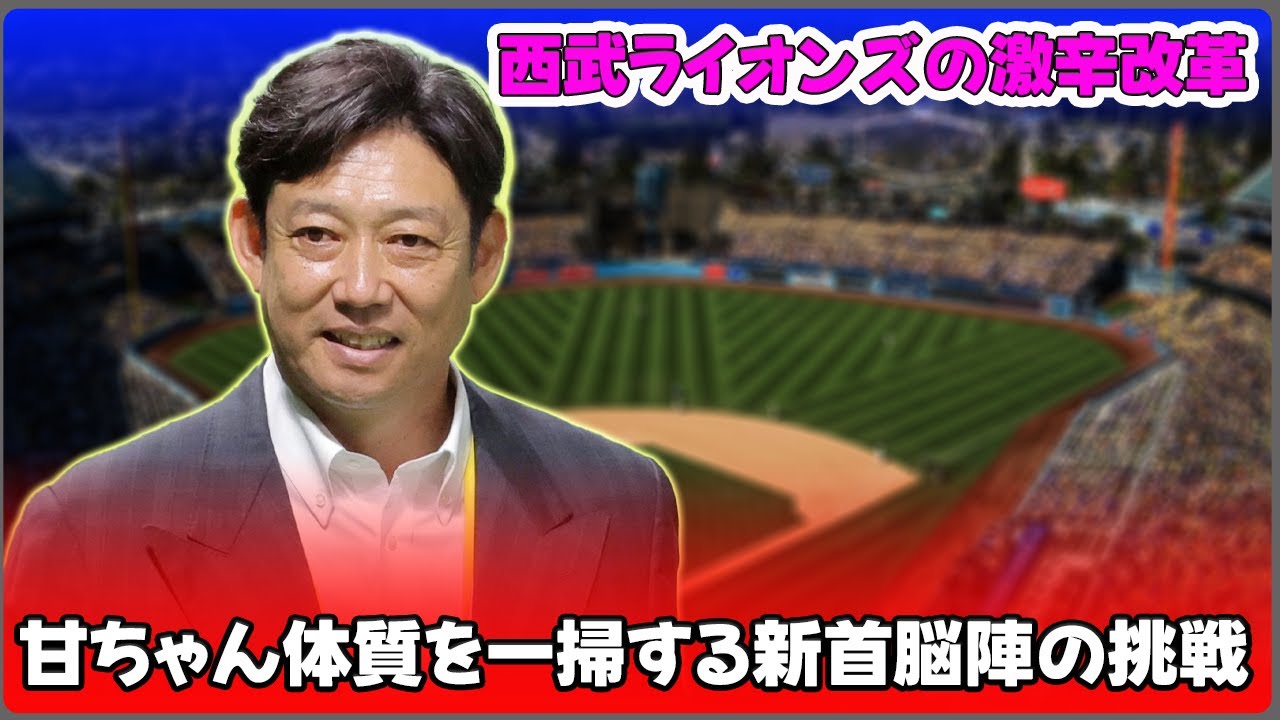 “#西武ライオンズ, #鳥越裕介, #仁志敏久, #大引啓次, #外崎修汰, 「西武ライオンズの激辛改革!甘ちゃん体質を一掃する新首脳陣の挑戦」 皆さん、こんにちは!今日は西武ライオンズの新たな改革についてお話ししましょう。昨シーズン、ライオンズは球団ワーストの91敗を記録し、チームの再建が急務となっています。そこで、球団は新たな首脳陣を招へいし、〝甘ちゃん体質〟の一掃に取り組んでいるのです。