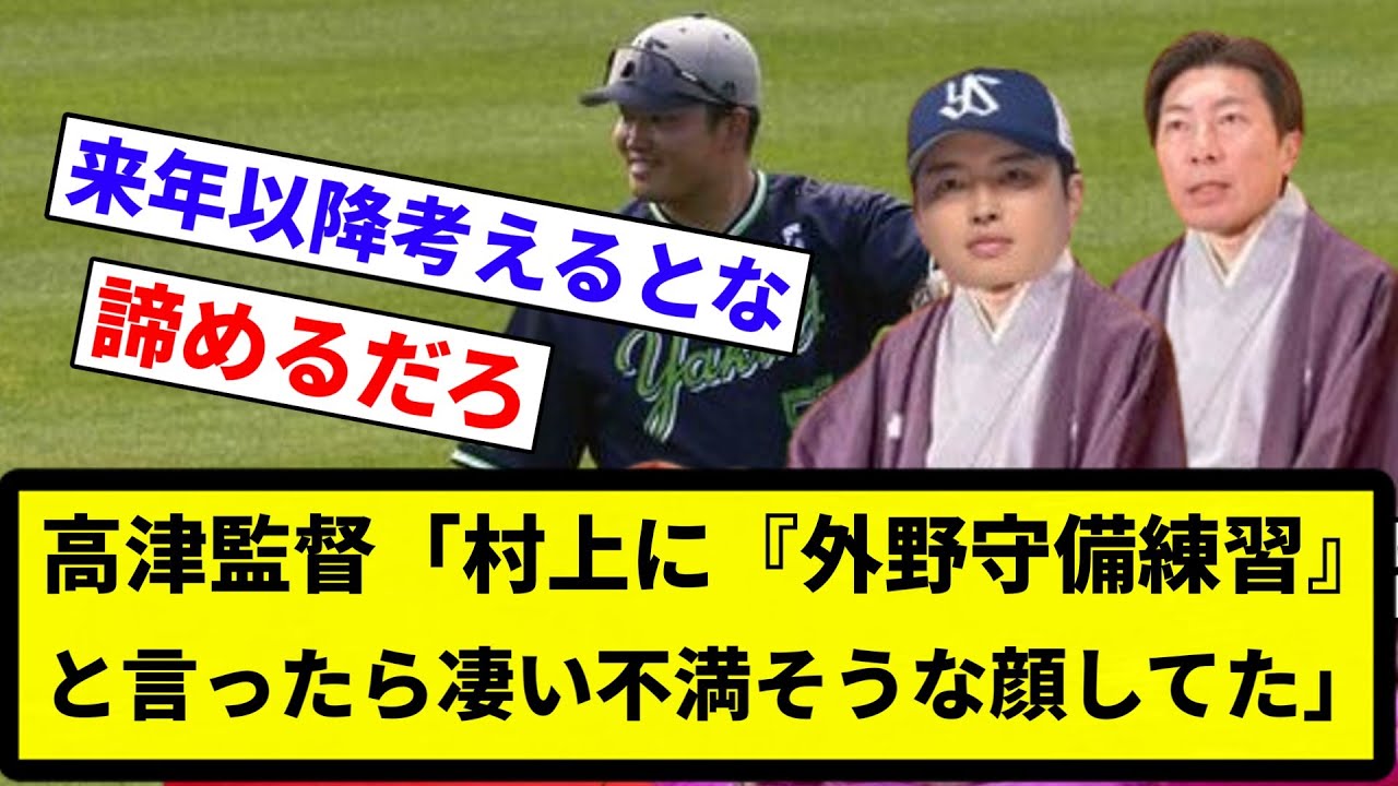 引用 高津監督「村上宗隆に『外野守備練習しといて』と言ったら凄い不満そうな顔してた」