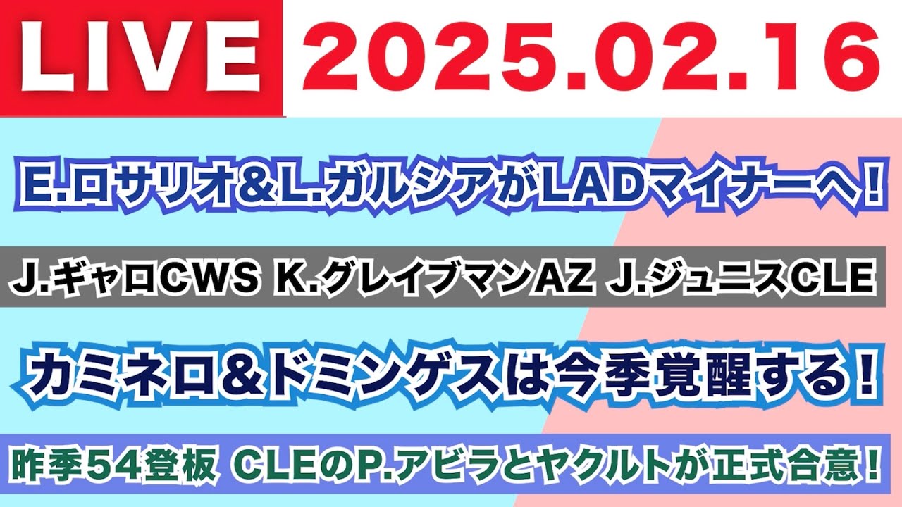 【2025.02.16】E.ロサリオ&L.ガルシアがドジャースマイナーへ!/J.ギャロCWS K.グレイブマンAZ J.ジュニスCLE/カミネロ&ドミンゲスは今季覚醒する!/P.アビラがヤクルトへ!