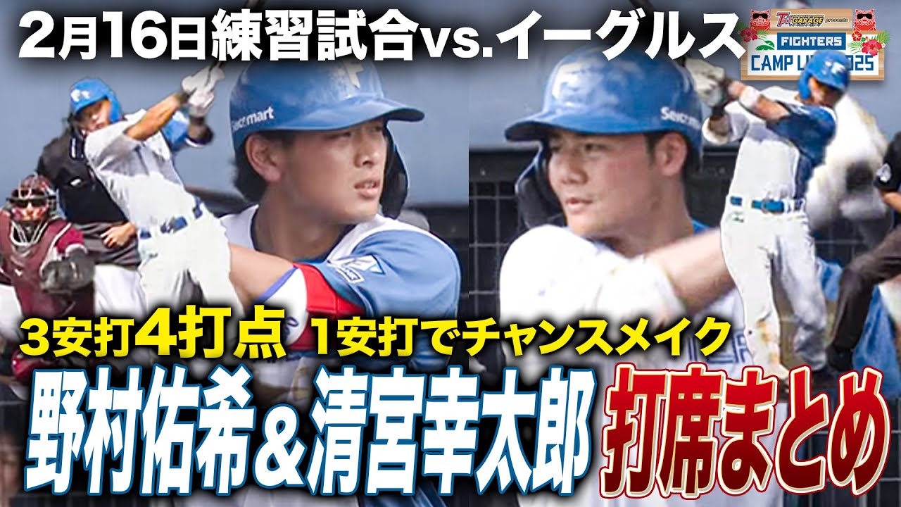野村佑希5打数3安打4打点&清宮幸太郎3打数1安打まとめ 練習試合vs楽天イーグルス<2/16ファイターズ春季キャンプ2025>