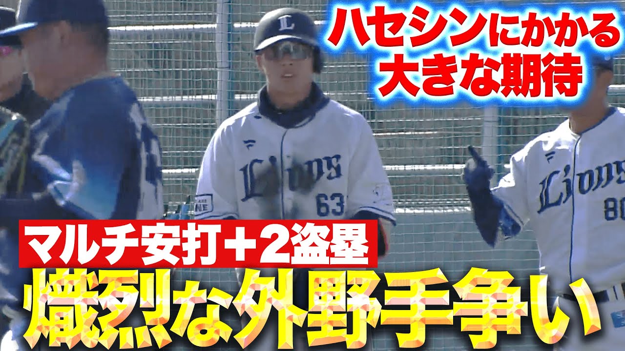 レギュラーの座を虎視眈々と狙う埼玉西武・長谷川信哉。本日の紅白戦ではタイムリーを含むマルチ安打3出塁に2盗塁と猛烈アピール!! 存在感を十分にみせつけた!!