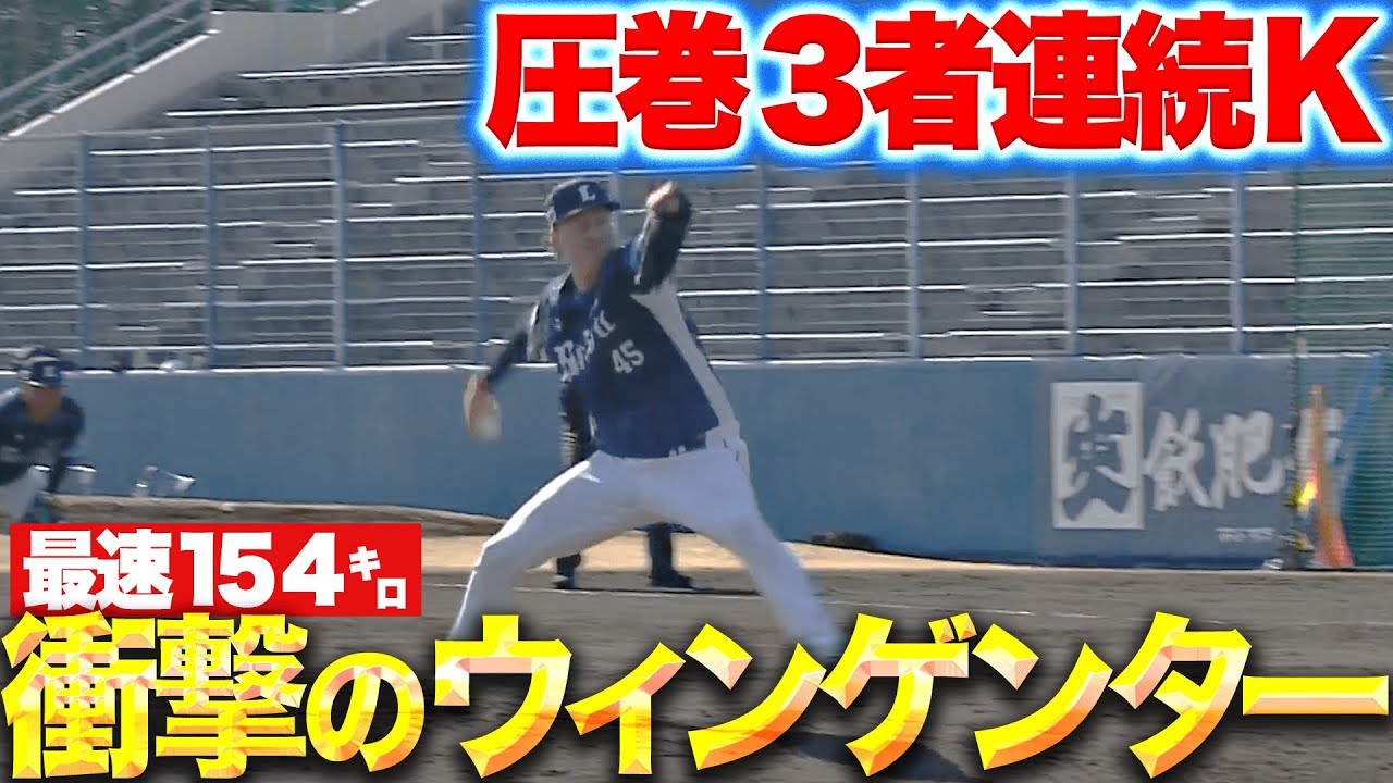 埼玉西武・ウィンゲンターが衝撃の実戦デビュー!! 紅白戦に登板したウィンゲンターは150キロ超の剛球を連投し圧巻の3者連続三振!! 試合終盤、頼りになる存在となりそうだ!!