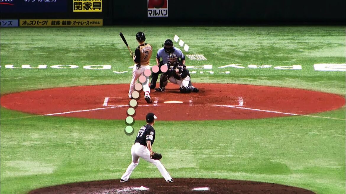 福岡ソフトバンク・嘉弥真新也の投球を上から見てみると、その曲がり具合のエグさが一目で分かります。これを見た私の感想は「そりゃ避けるよな…」でした。
