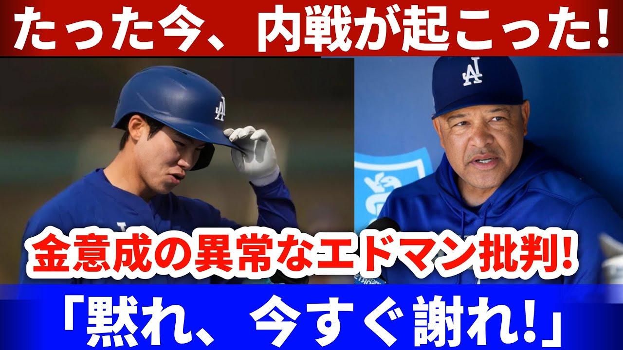 「【速報】ドジャース内部で衝突勃発!金慧成のエドマン批判にロバーツ監督が激怒!」