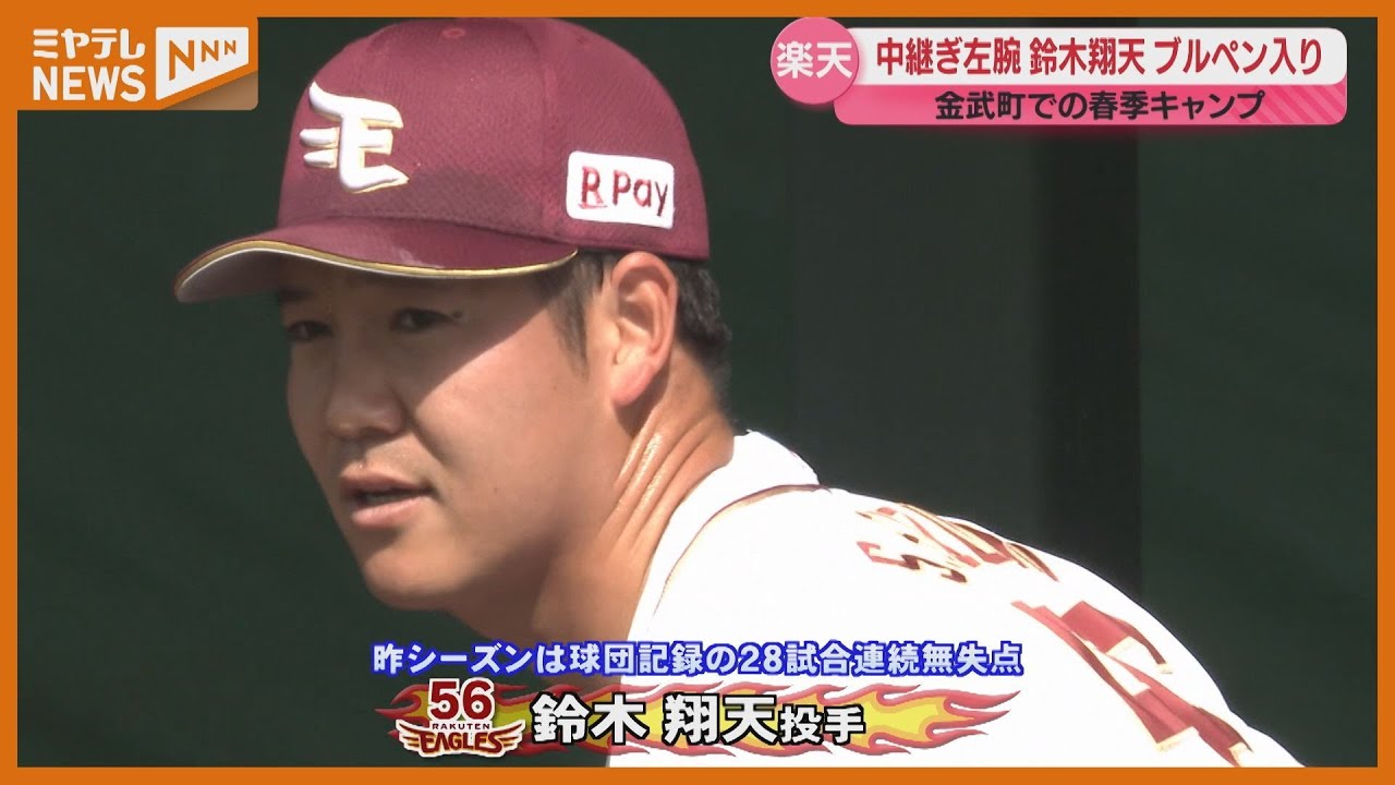 楽天の沖縄キャンプは終盤。主力選手たちがギアを上げてきた。先週2軍から合流した中継ぎ左腕・鈴木翔天投手がブルペン入りし、順調な調整ぶりを披露。また、主砲・浅村選手も実戦形式の練習で結果を残した。