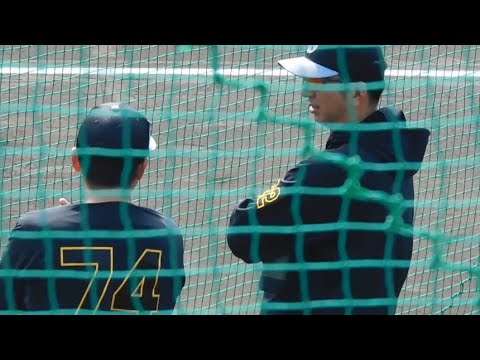 【指揮官と参謀役】深く話し込む様子の藤川球児監督と藤本敦士総合コーチ