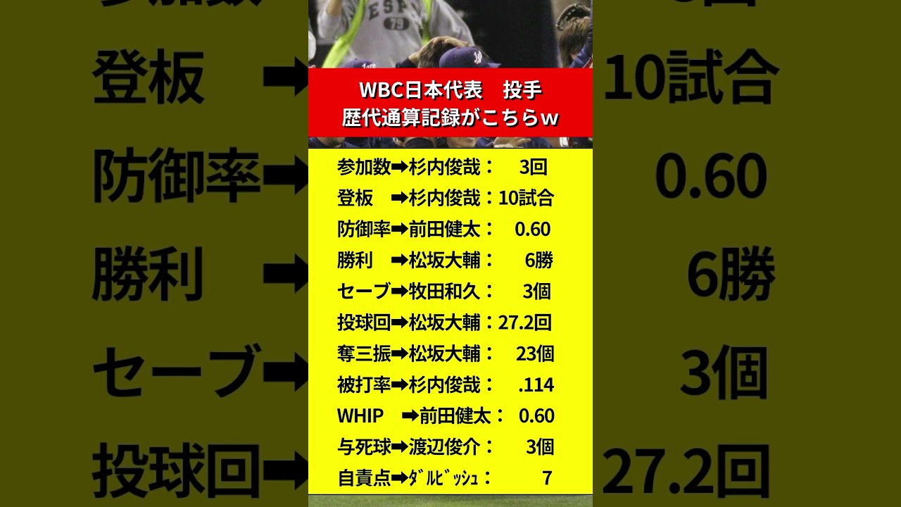 WBC日本代表 投手の歴代通算記録がこちらw WBC日本代表 投手の歴代通算記録がこちらw #松坂大輔 #前田健太 #杉内俊哉 Tohoku Rakuten Golden Eagles東北楽天ゴールデンイーグルス牧田和久 NPBHUB.COM | The Fanbase of Nippon Baseball & Nippon Professional Baseball