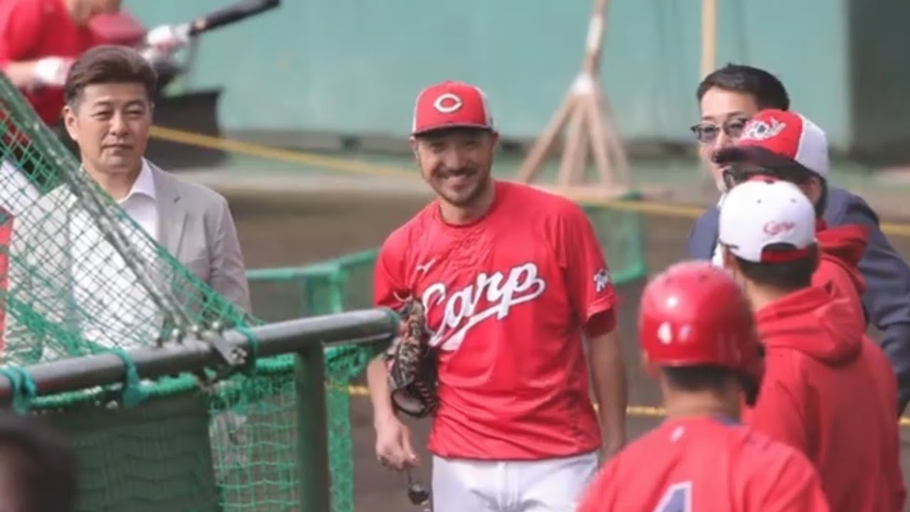 華麗なるカープの守備職人『菊池涼介』忍者キャッチを決めて野村謙二郎氏、緒方孝市氏元カープ監督へご挨拶 春期沖縄キャンプ 2025.2.22