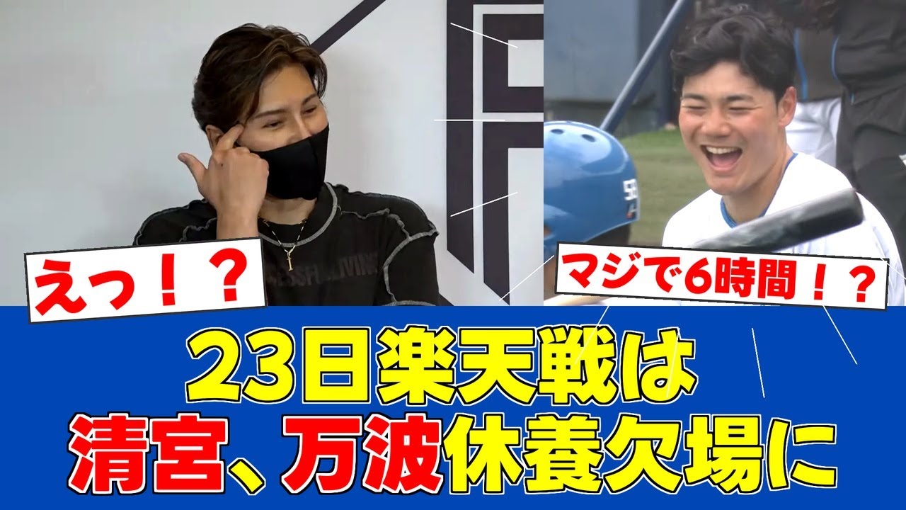 日本ハム・新庄監督が清宮、万波両選手に6時間のマッサージを指示。23日の楽天戦は休養を取らせる方針。