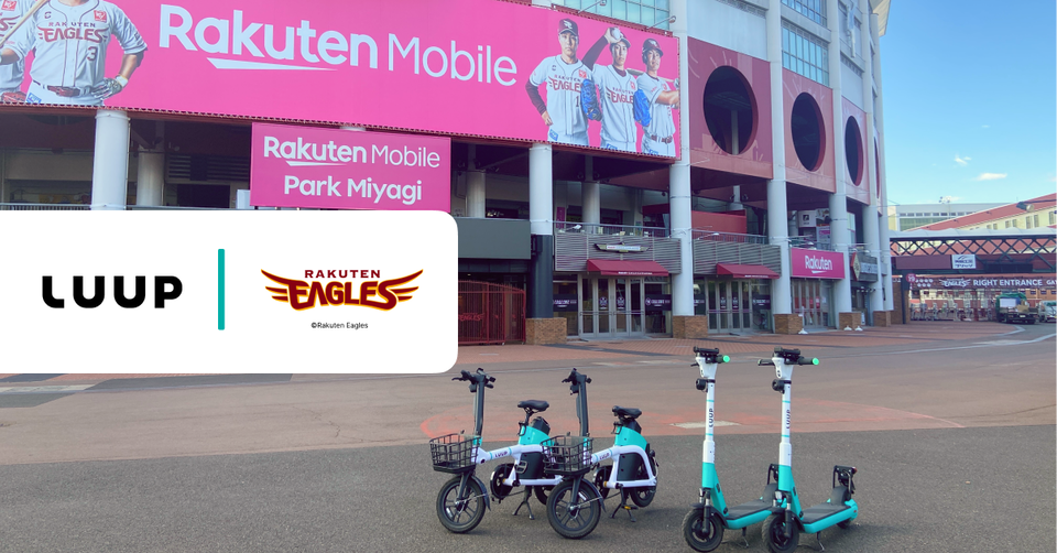 Luupは29日、プロ野球チーム「東北楽天ゴールデンイーグルス」を運営する楽天野球団とスポンサー契約を締結した。これにあわせて、球団の本拠地「楽天モバイルパーク宮城」に電動マイクロモビリティの「LUUP」のポートが設置される。