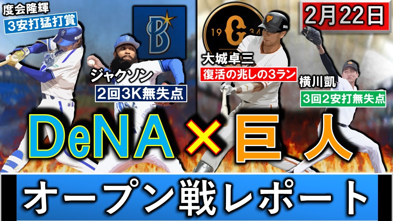 2月22日「DeNA×巨人」オープン戦レポート DeNAは2年目ドラ1『度会隆輝』が猛打賞&『ジャクソン』が3回0封!巨人は『大城卓三』が復活の兆し見える3ラン&『横川凱』が3回0封でローテ入り前進!